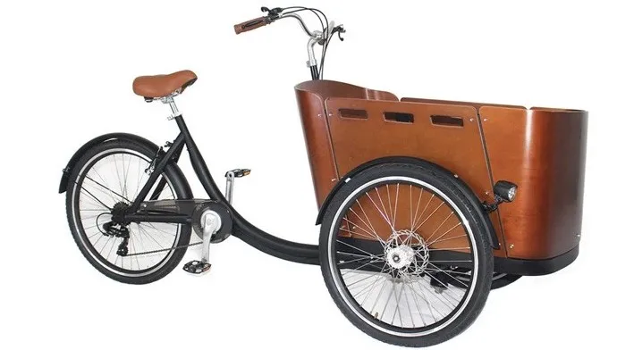 250W hub motor curved wood box Family cargo bike 250W Motor Electric pedal kids Cargo Bike 3 Wheel